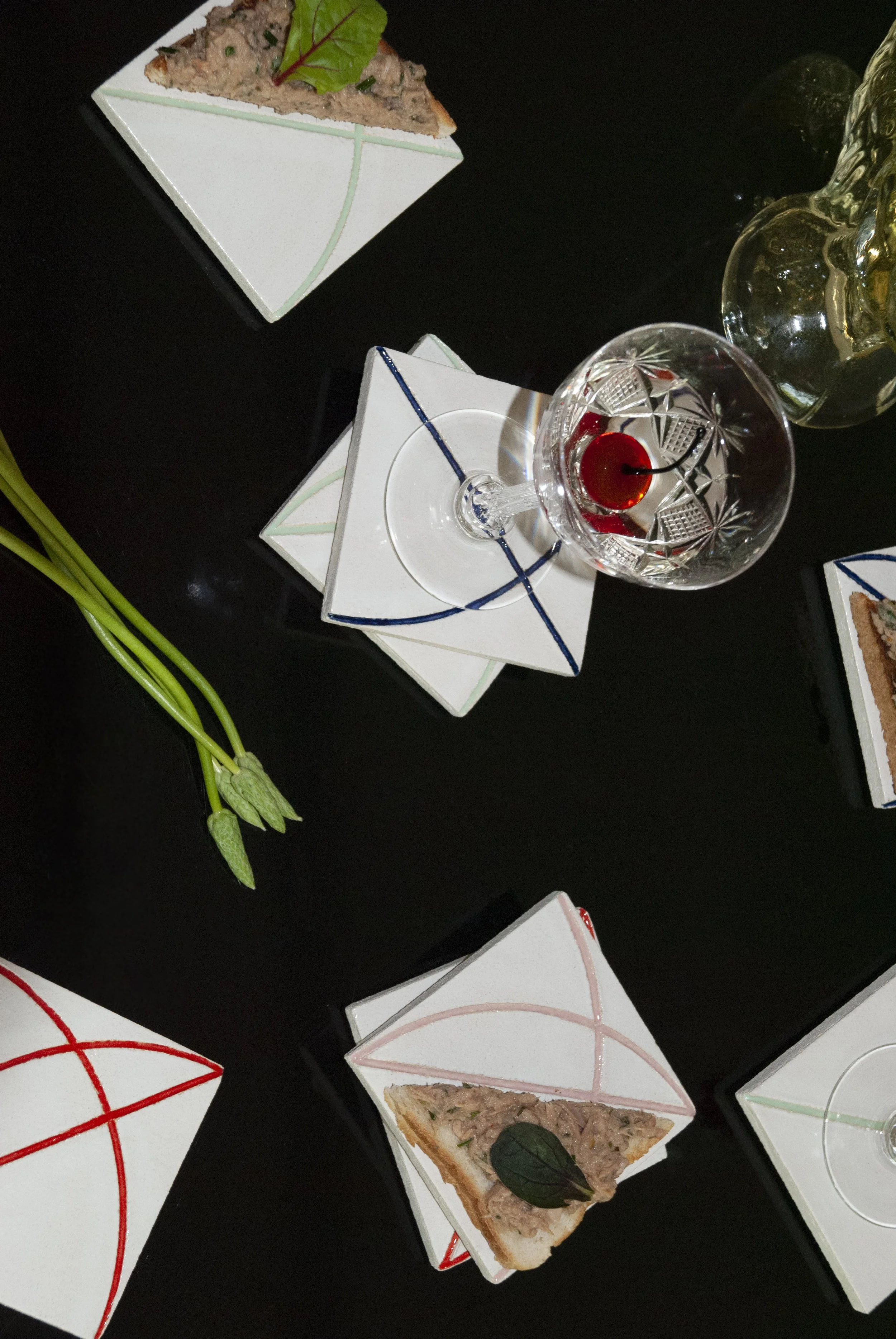 THE TOAST TILE is a decorative tile coaster adding sophisticated pattern play to wherever you put it. With a wooden plate underneath, not to scratch your table, it’s perfect for drinking vessels of all possible sizes & bottles, but toasts & other small bites also fit perfectly on them.